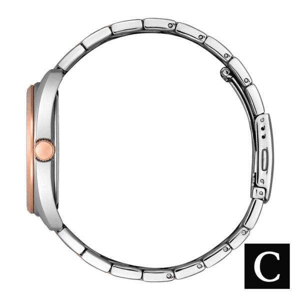 Kiểu khóa: Khóa gập có nút nhấn. Kiểu dây đeo: Dây đeo bằng thép không gỉ