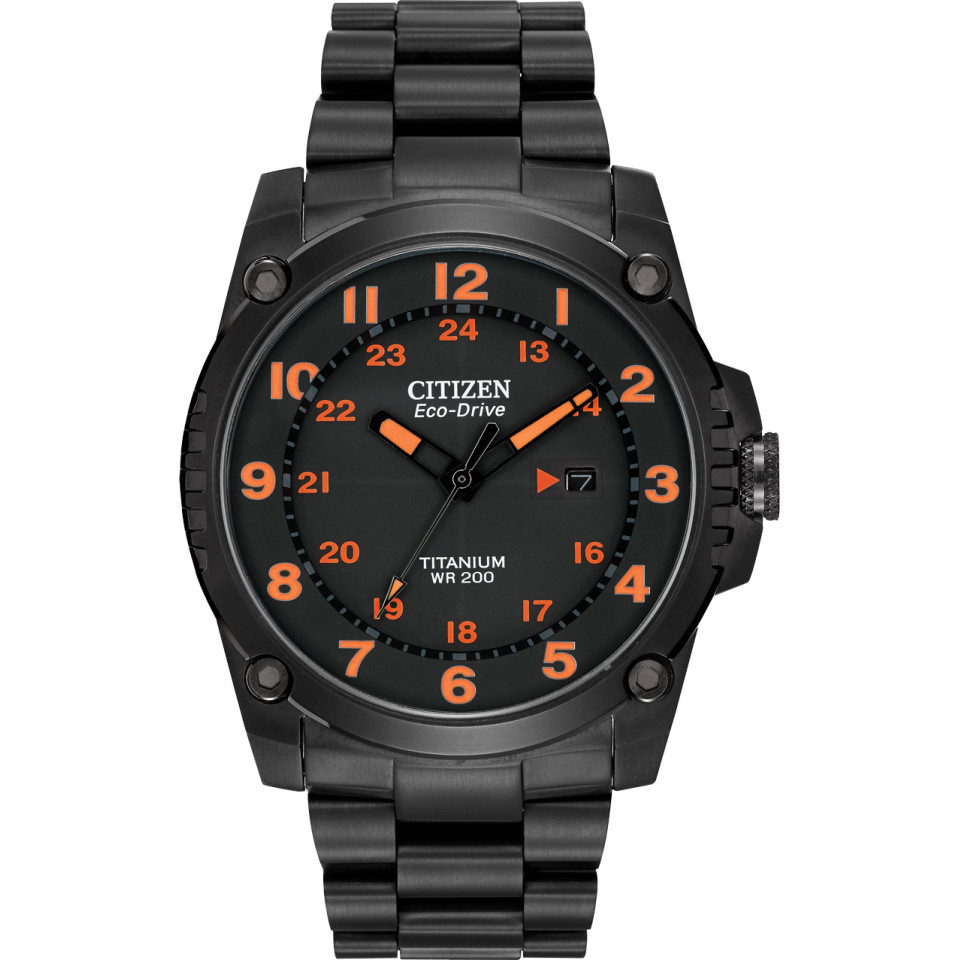 Titanium giữ vững vị trí của mình, với bộ chuyển động được thử nghiệm có khả năng chống sốc gấp 2,5 lần so với các đối thủ cạnh tranh. Với vỏ và vòng đeo tay bằng titan đen nguyên khối, mặt số màu đen, kim và cọc số dạ quang màu cam, chiếc đồng hồ này có thể đáp ứng mọi thách thức trong cả công việc và giải trí. Sử dụng công nghệ Eco-Drive của chúng tôi – được cung cấp năng lượng bằng ánh sáng, bất kỳ ánh sáng nào. Không bao giờ cần pin. Số cỡ nòng B872