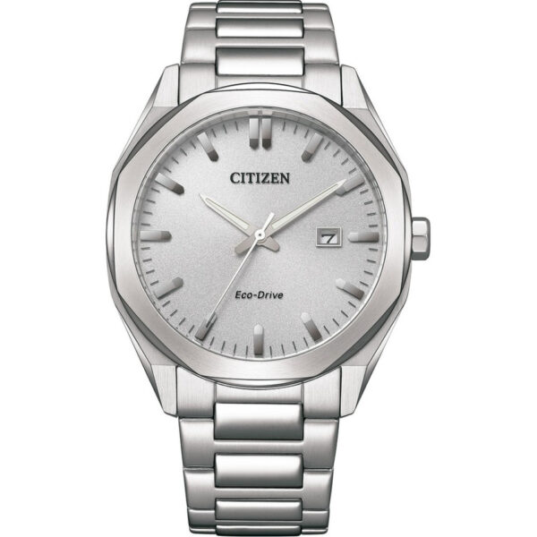 Vỏ và dây đeo bằng thép không gỉ tông màu bạc. Vành thép không gỉ tông màu bạc cố định. Mặt số màu bạc với kim và vạch chỉ giờ tông màu bạc. Vạch chỉ phút xung quanh vành ngoài. Kiểu mặt số: Analog. Kim phát quang. Hiển thị ngày ở vị trí 3 giờ. Bộ máy Citizen Caliber E111-C0M eco-drive. Tinh thể khoáng chống xước. Nắp lưng chắc chắn. Hình dạng vỏ bát giác, kích thước vỏ: 41 mm, độ dày vỏ: 9,7 mm. Chiều rộng dây đeo: 22 mm. Gập lại bằng khóa bấm. Chống nước ở độ sâu 100 mét / 330 feet.