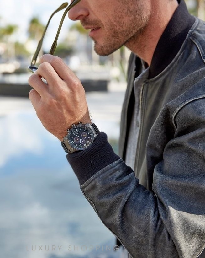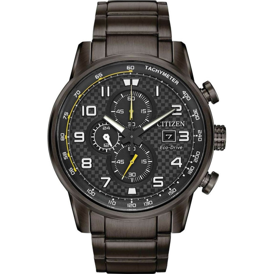 Đã đến lúc bắt đầu cuộc đua với chiếc CITIZEN Primo Chronograph mới và cải tiến với công nghệ Eco-Drive. Một chiếc đồng hồ theo kịp lối sống tốc độ của bạn, được minh họa ở đây với vỏ và vòng đeo tay bằng thép không gỉ mạ ion màu xám dành cho nam giới với mặt số màu đen tuyền với các điểm nhấn màu vàng sáng. Đồng hồ bấm giờ 1/5 giây với thời gian và ngày 12/24 giờ. Số cỡ nòng B612.