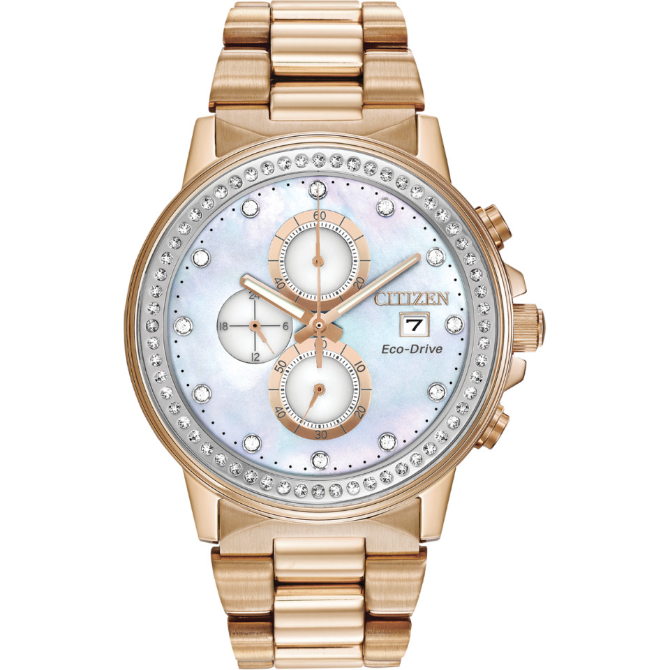Mặc CITIZEN Nighthawk của bạn từ ngày này sang đêm khác. Chiếc đồng hồ này sẽ phù hợp với mọi phong cách với các điểm nhấn pha lê trên mặt số và vòng quay số. Vỏ và dây đeo bằng thép không gỉ tông vàng hồng với mặt số xà cừ màu trắng có đồng hồ bấm giờ 1/5 giây, đo tối đa 60 phút, ngày và giờ 12/24 giờ. Sử dụng công nghệ Eco-Drive của chúng tôi – được cung cấp năng lượng bằng ánh sáng, bất kỳ ánh sáng nào. Không bao giờ cần pin. Số cỡ nòng B612.