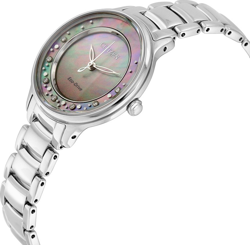 Chiếc đồng hồ này chứa đựng tất cả sự sang trọng và phong cách của dòng Citizen L. Những viên kim cương lấp lánh rực rỡ, mặt số xà cừ và các cọc số được bố trí tinh tế chỉ là một vài trong số các tính năng trên chiếc đồng hồ Citizen L Circle of Time này. Được thể hiện ở đây với vỏ và vòng đeo tay bằng thép không gỉ với mặt số xà cừ màu xám chuyển màu.