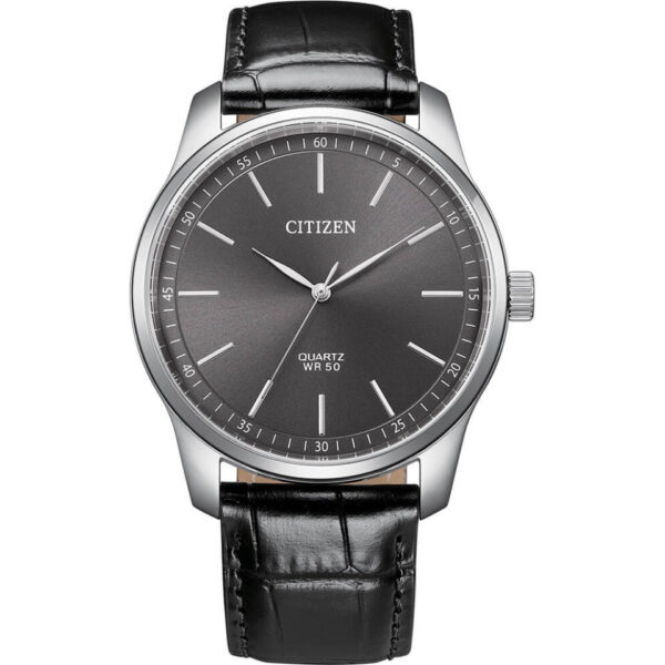 Sự đơn giản tinh tế kết hợp với chức năng hiện đại trong chiếc đồng hồ bóng bẩy này, có mặt số màu xám được bao quanh bởi vỏ thép không gỉ và được bổ sung bởi dây đeo bằng da thật. Khóa khóa cố định đồng hồ một cách thoải mái, trong khi khả năng chống nước ở độ sâu 50 mét đảm bảo độ bền khi sử dụng hàng ngày.