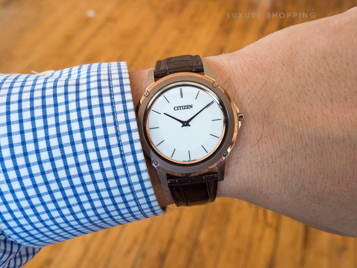Ranh giới giữa thiết kế và công nghệ ngày càng thu hẹp lại. Eco-Drive One, cực kỳ mỏng và là chiếc đầu tiên thuộc loại này, là chiếc đồng hồ chạy bằng ánh sáng mỏng nhất thế giới với độ dày chỉ 2,98mm*. Thiết kế được cân nhắc kỹ lưỡng của chiếc đồng hồ này được thể hiện qua chi tiết của các bộ phận đồng hồ, với 85 bộ phận trong một bộ chuyển động dày 1,00mm. Mẫu này có vỏ bằng thép không gỉ với viền gốm kim loại (gốm + kim loại) tông màu hồng, dây đeo cá sấu màu nâu óc chó với chốt triển khai và mặt số bằng pha lê sapphire màu trắng. Sử dụng công nghệ Eco-Drive của chúng tôi – được cung cấp năng lượng bằng ánh sáng, bất kỳ ánh sáng nào. Không bao giờ cần pin. Số cỡ nòng 8826.
