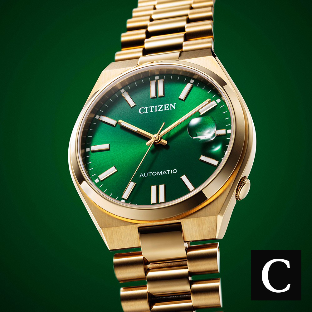 Citizen TSUYOSA NJ0152-51X là một mẫu đồng hồ tự động của thương hiệu Citizen Nhật Bản, nổi bật với thiết kế thể thao và mạnh mẽ. Với mặt số màu xanh lá bắt mắt, chiếc đồng hồ này thu hút sự chú ý ngay từ cái nhìn đầu tiên. Dòng TSUYOSA của Citizen mang ý nghĩa "sức mạnh", đại diện cho sự bền bỉ và sự kết hợp hài hòa giữa phong cách hiện đại và chức năng vượt trội.